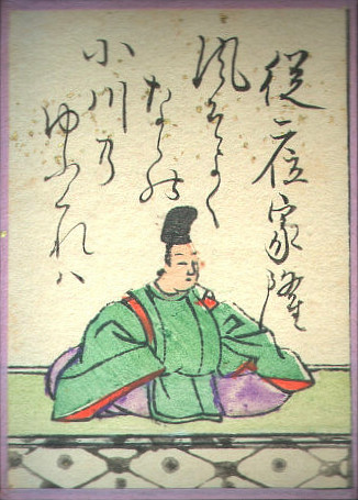 後鳥羽上皇が和歌を学ぶに当たって、九条良経(☞91番歌・きりぎりす〜 の作者)に相談したところ家隆を紹介され、後鳥羽上皇の信任を受けた。