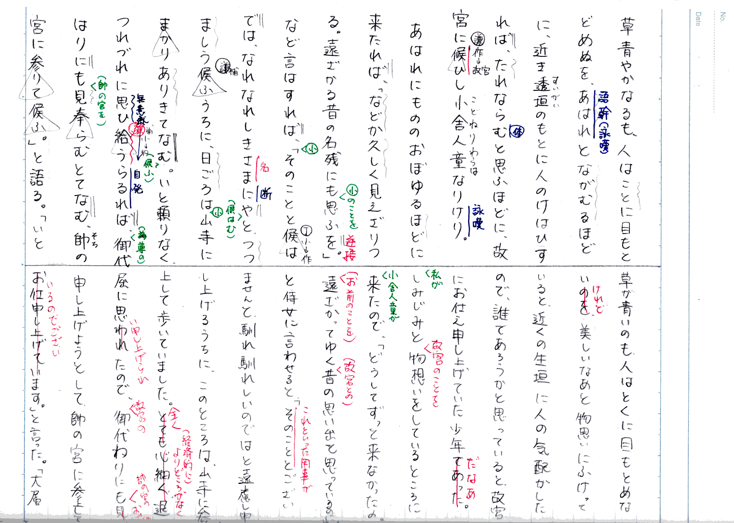 古典を勉強している皆さん、このウェブサイトに載っている情報は少ないのです。ぜひ手を動かし、辞書を繰り、情報を書き足していってくださいね。あくまでもご参考に。