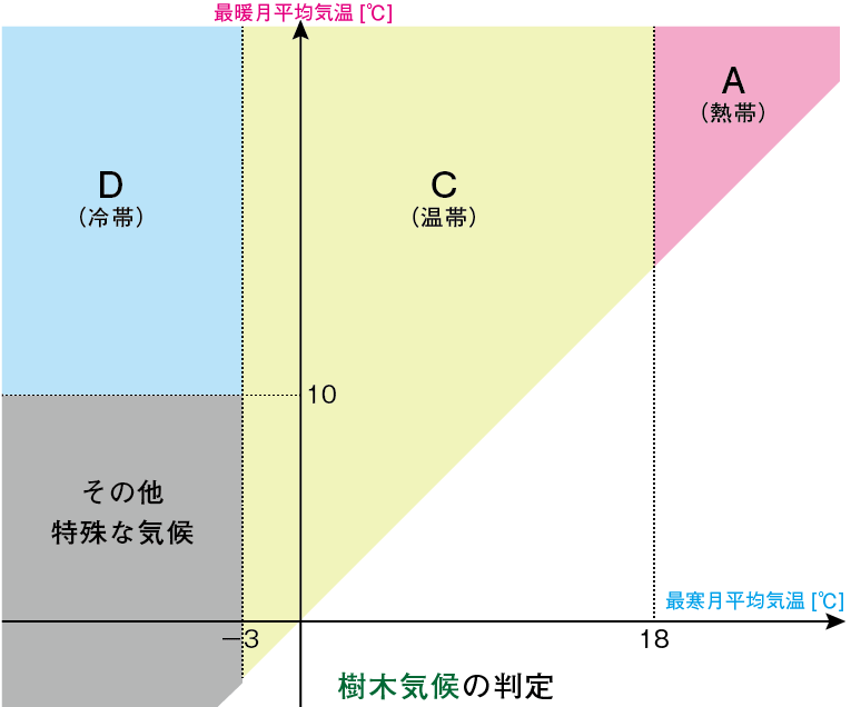 最寒月平均気温-3℃以上18℃未満 → C(温帯)
