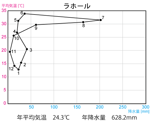 例として、ラホール(パキスタン)の気候区分を判定してみよう。