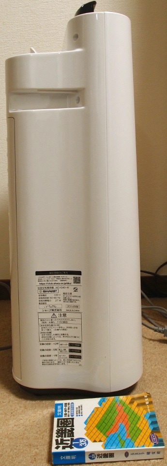 決め手は奥行きでした。文庫本サイズより二回りほど長い奥行きですが、ずらりと並んでいた同じ機能(10畳程度の加湿機能付き)の商品の中ではダントツで奥行きが小さかったのです。
