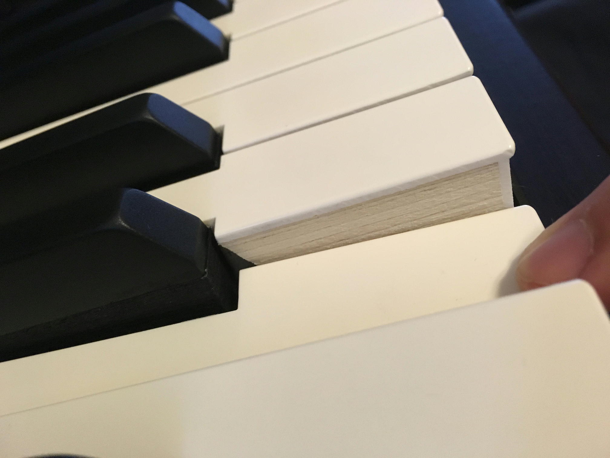 黒鍵の一つが、弾くと凹んだままで戻らなくなってしまった。20年以上前のピアノだったし、本当に「遂に」という感じだ。